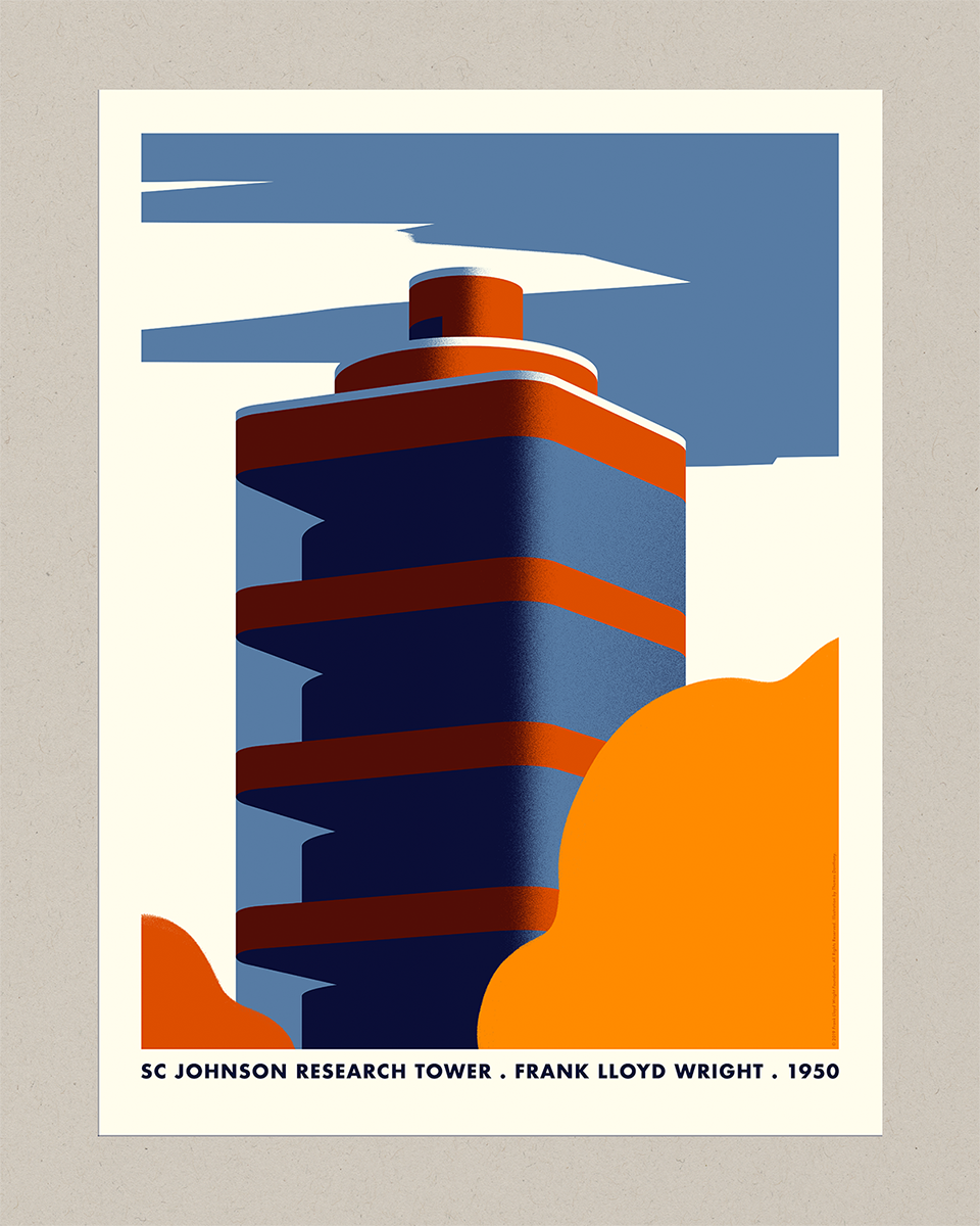 Screen printed poster for Frank Lloyd Wright: Timeless, an exhibition at the